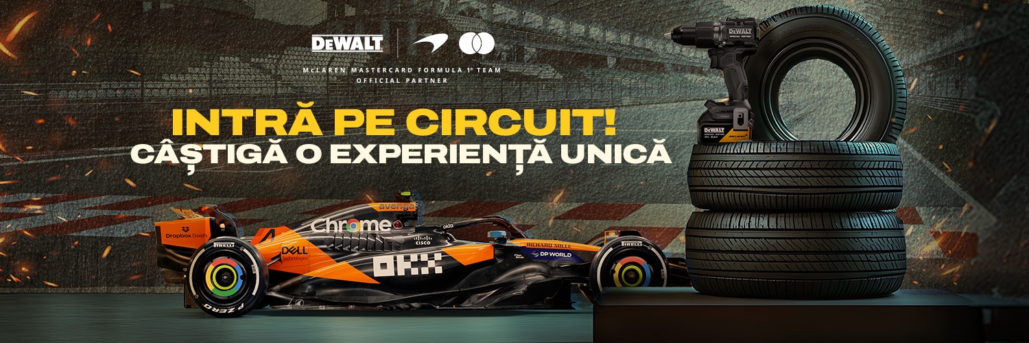 Achiziționează produse din gama DEWALT x McLaren în valoare de cel puțin 500 RON și primești 2 șanse de câștig.