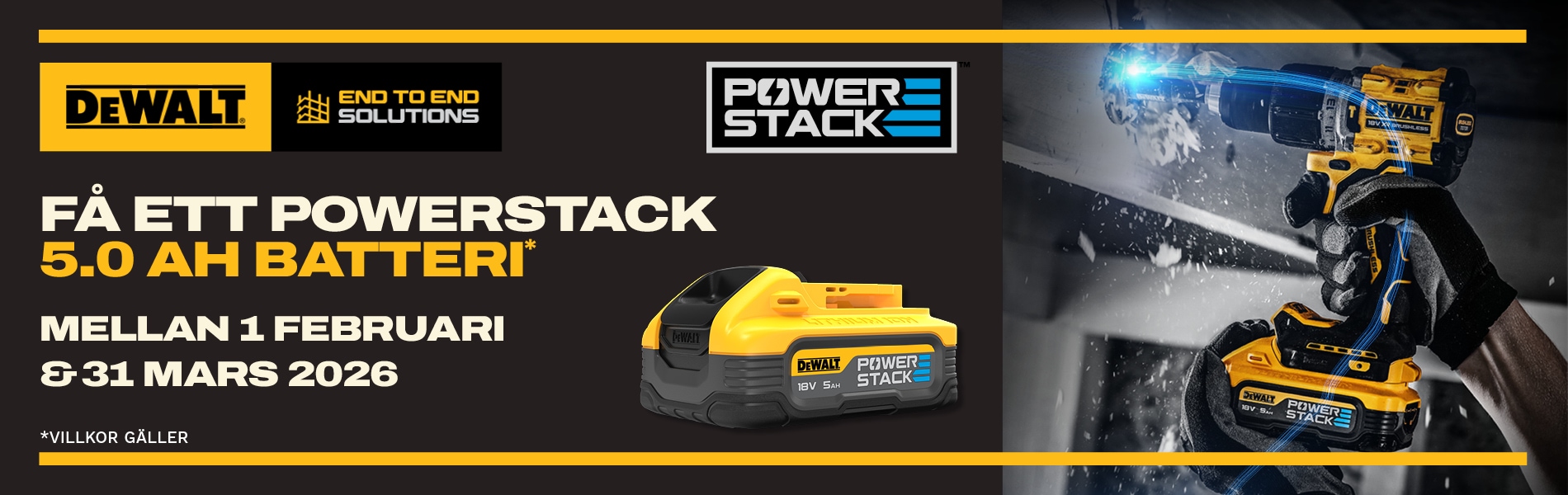 FÅ ETT POWERSTACK 18V XR 5.0 AH BATTERI PÅ KÖPET